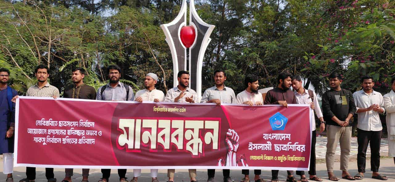 নোবিপ্রবিতে শাকসু নির্বাচন স্থগিতের প্রতিবাদে ও নোকসু নির্বাচনের দাবিতে মানববন্ধন