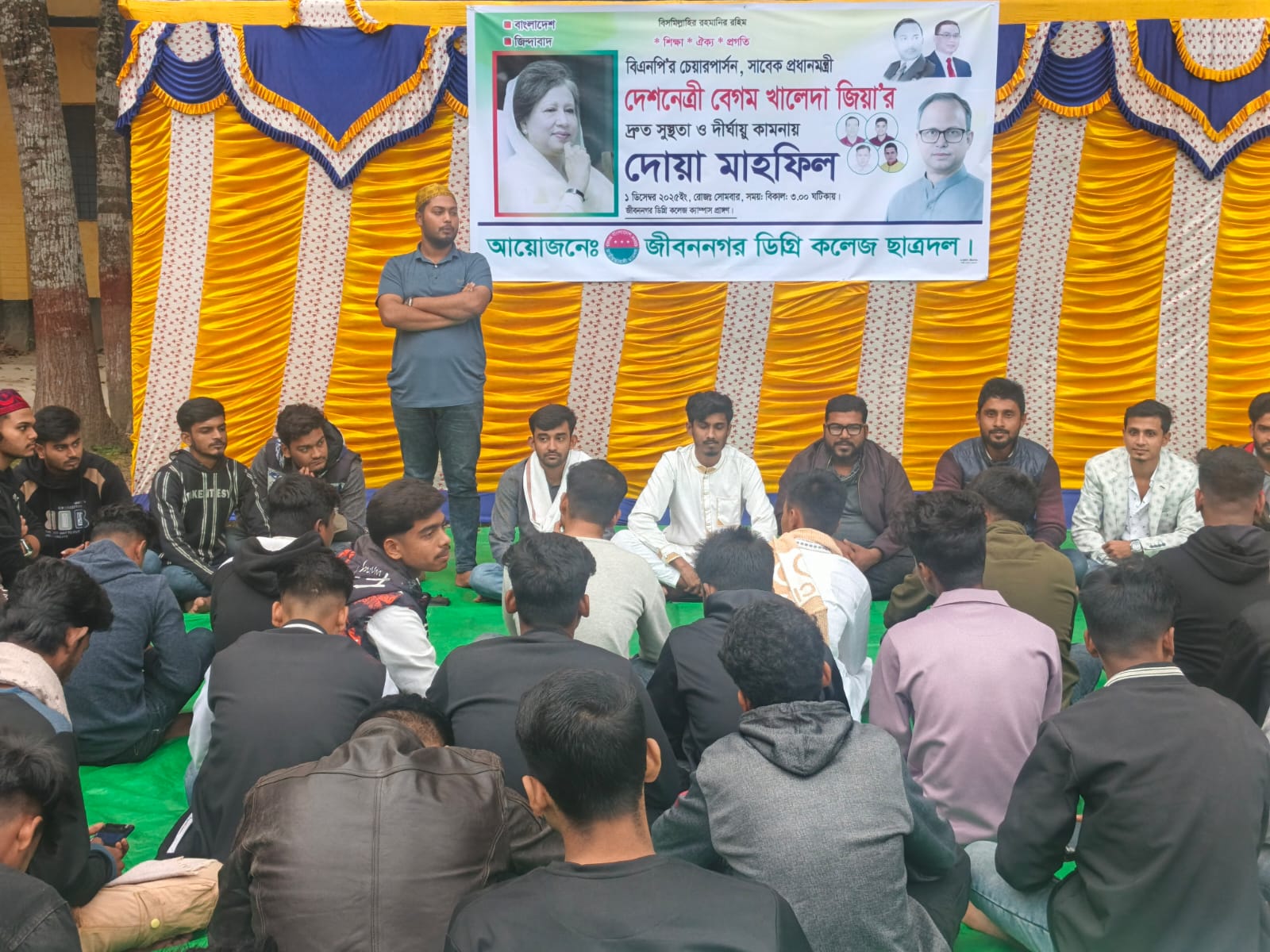বিএনপি চেয়ারপার্সনের রোগমুক্তি ও সুস্থতা কামনায় জীবননগরে ছাত্রদল ও শ্রমিকদের দোয়া