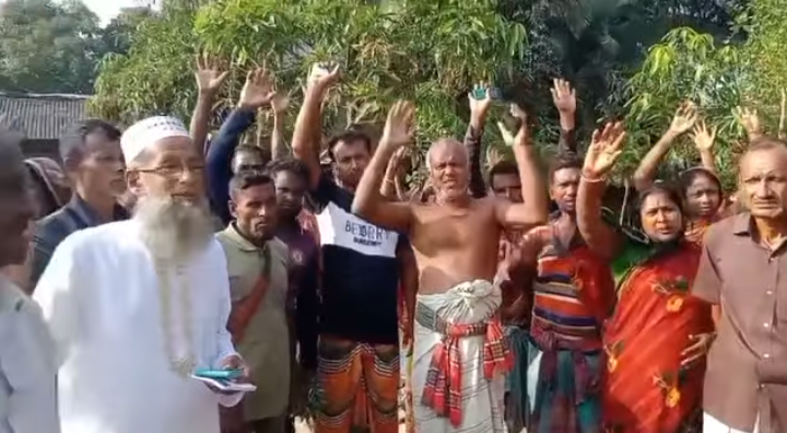 শেরপুরে একতরফা ডিক্রি ও ঘর-বাড়ি উচ্ছেদের প্রতিবাদে মানববন্ধন
