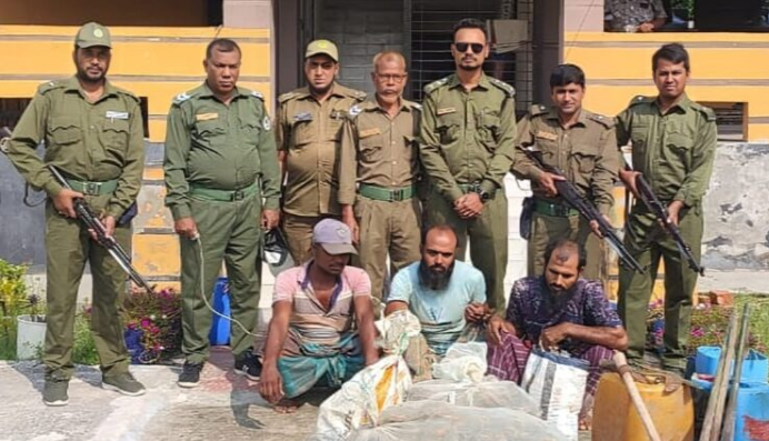 কয়রায় সুন্দরবনে অবৈধ প্রবেশ: তিন জেলে আটক, জব্দ নৌকা ও ৮০ কেজি কাঁকড়া