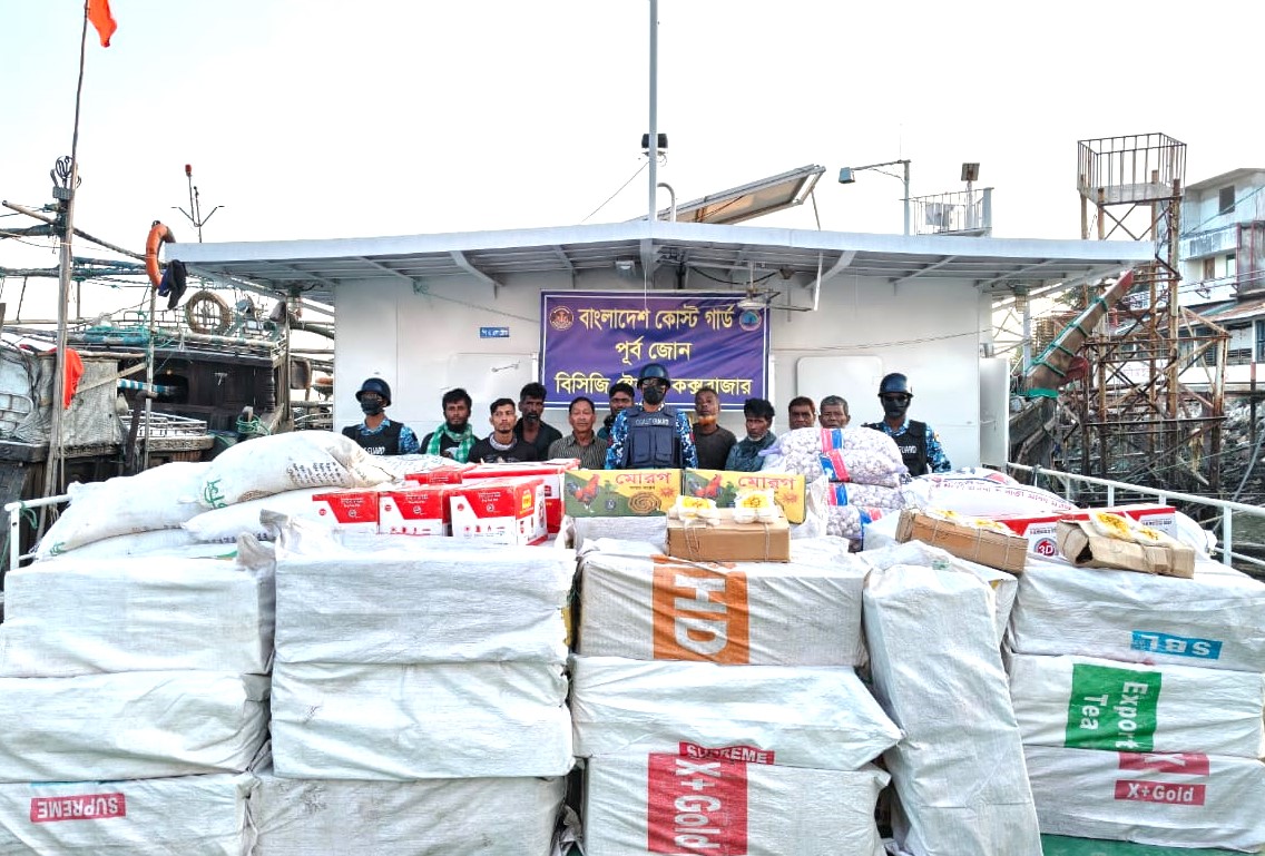 মিয়ানমার থেকে মাদকের বিনিময়ে বাংলাদেশী খাদ্য ও পণ্য সামগ্রিক পাচারকালে ৯ জন পাচারকারী আটক