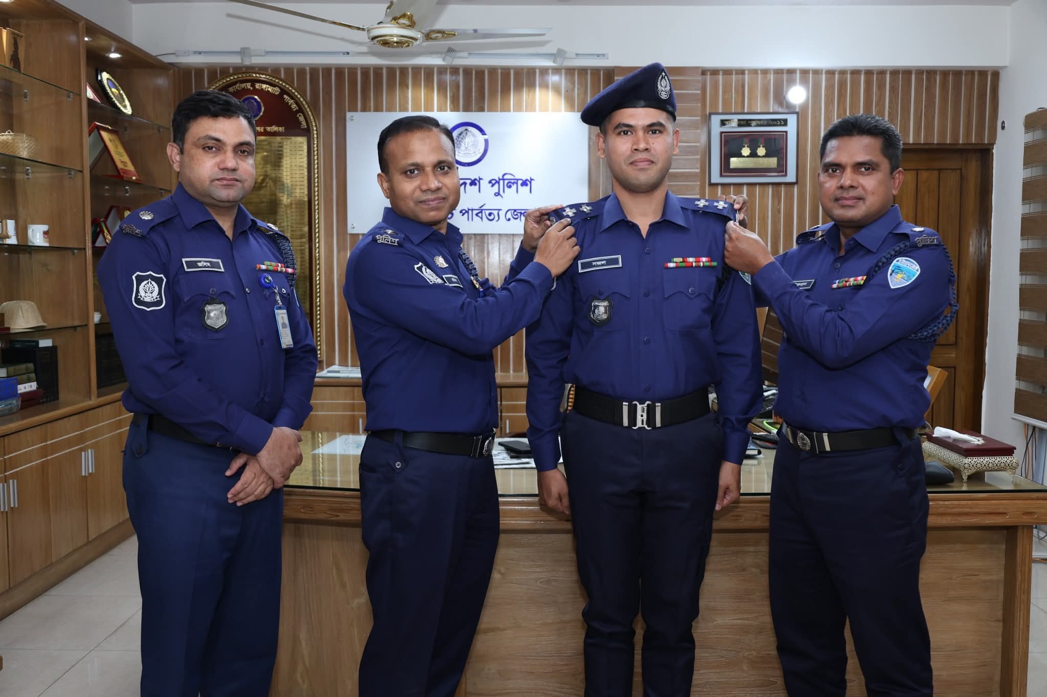 বিভাগীয় পদোন্নতি প্রাপ্ত পুলিশ কর্মকর্তাকে র্যাংক ব্যাজ পরিধান