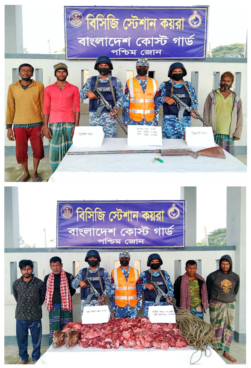সুন্দরবন কয়রায় কোস্ট গার্ডের দুটি অভিযানে অস্ত্র উদ্ধার, জিম্মি জেলে মুক্ত ও হরিণের মাংসসহ শিকারি আটক