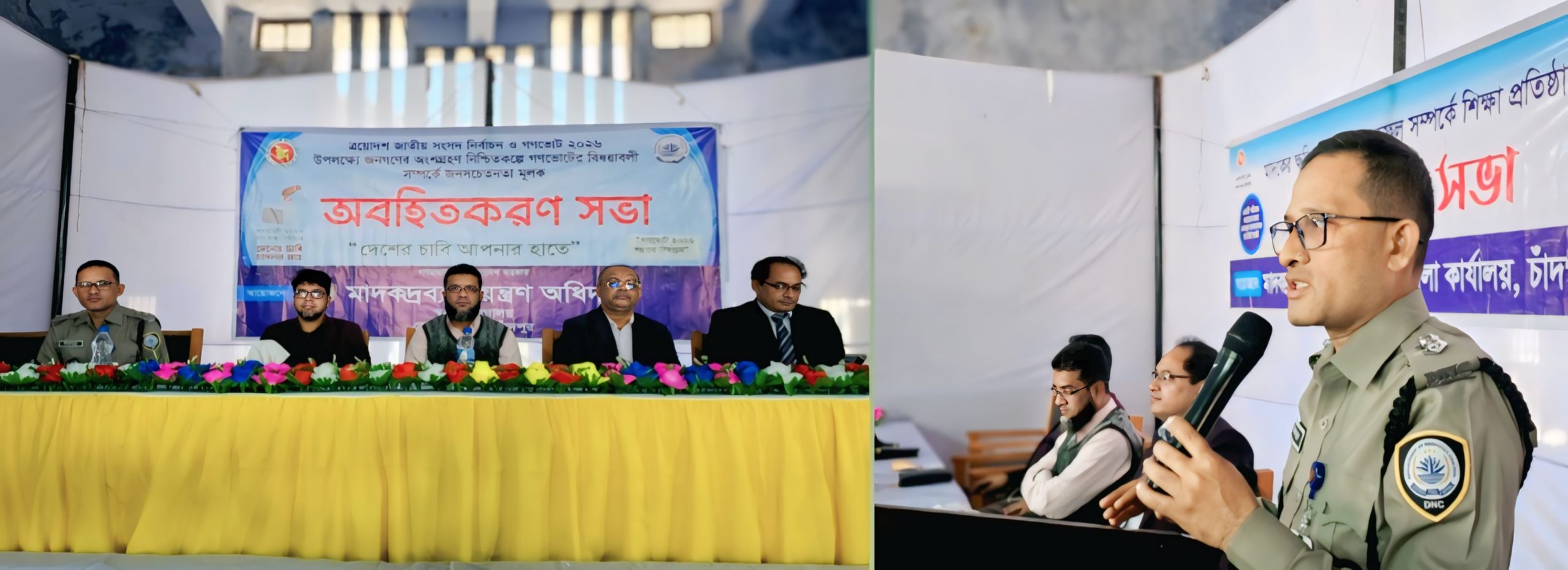 মাদকের বিরুদ্ধে সোচ্চার ডিএনসি: চাঁদপুরে আলোচনা সভা ও গণভোট সচেতনতা কার্যক্রম