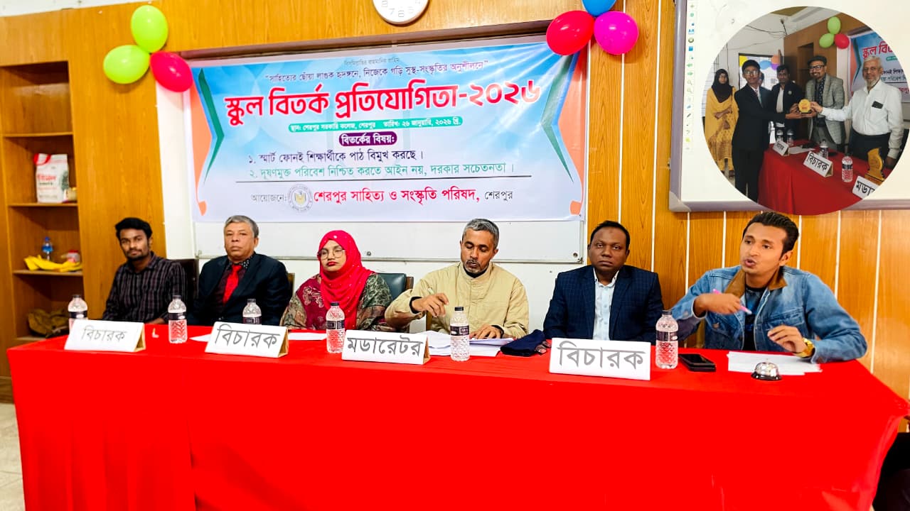 শেরপুর সাহিত্য ও সংস্কৃতি পরিষদের উদ্যোগে স্কুল বিতর্ক প্রতিযোগিতা অনুষ্ঠিত