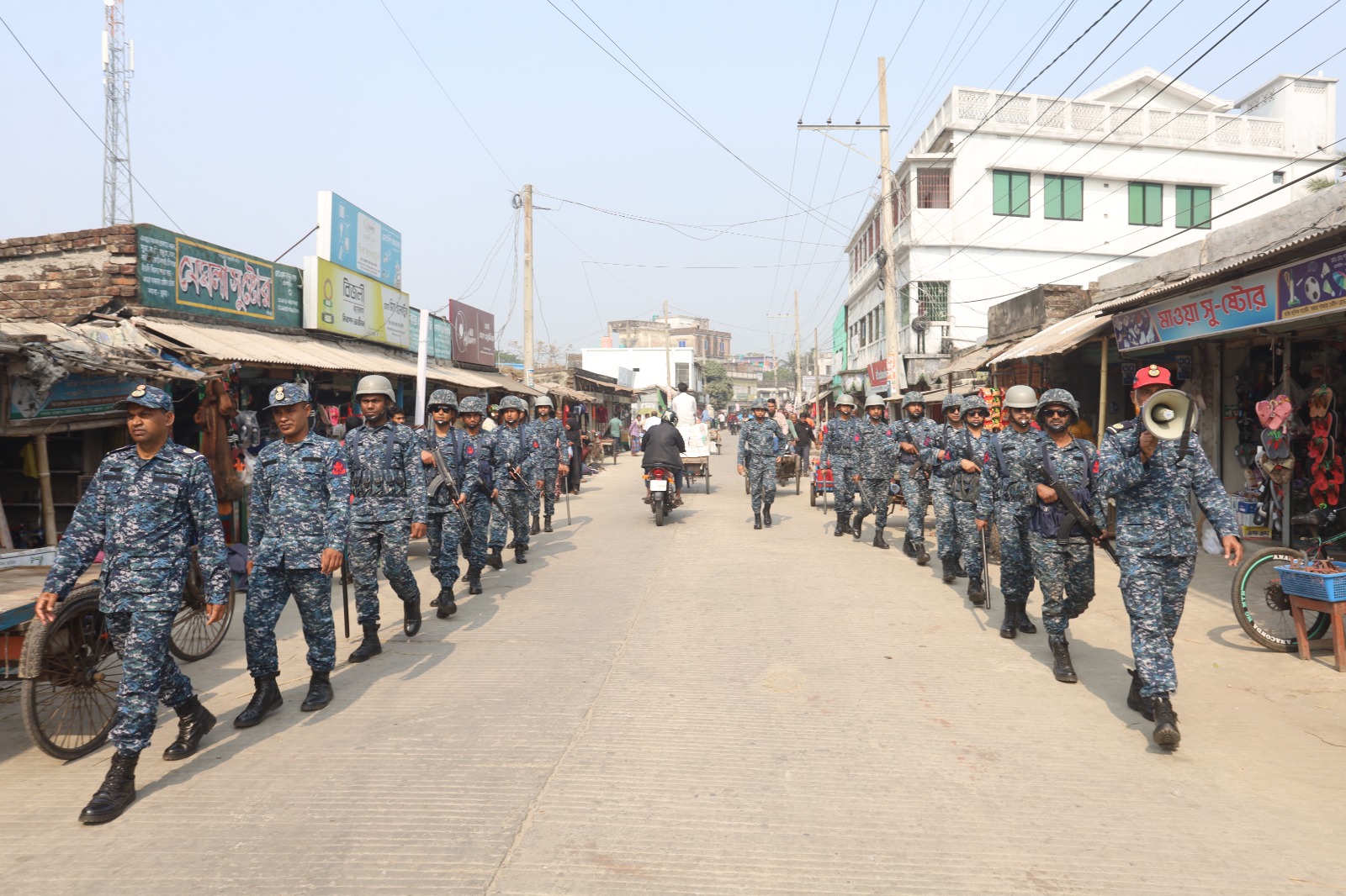 নির্বাচনী নিরাপত্তায় কয়রায় বাংলাদেশ নৌবাহিনীর সচেতনতামূলক ফুট পেট্রোলিং