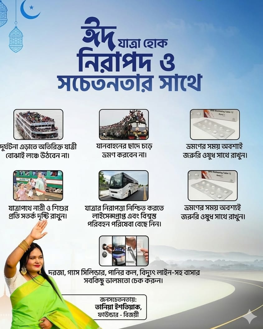 ঈদে নাড়ির টানে বাড়ি যাওয়ার আগে বাসার নিরাপত্তা নিশ্চিত করার আহ্বান তানিয়া ইশতিয়াকের