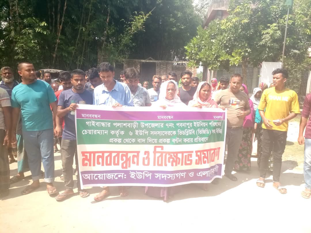 পলাশবাড়ীতে ইউপি চেয়ারম্যানের বিরুদ্ধে মানববন্ধন ও বিক্ষোভ সমাবেশ অনুষ্ঠিত