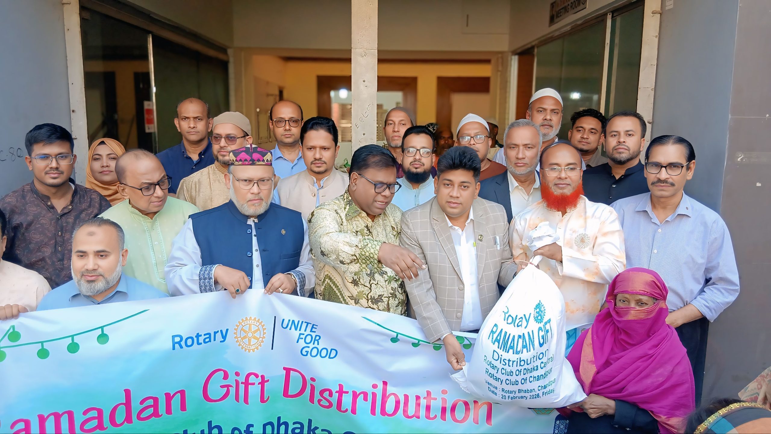 চাঁদপুর রোটারি ক্লাব ও ঢাকা সেন্ট্রালের উদ্যোগে সুবিধাবঞ্চিত মানুষের মাঝে রমাদান উপহার বিতরণ
