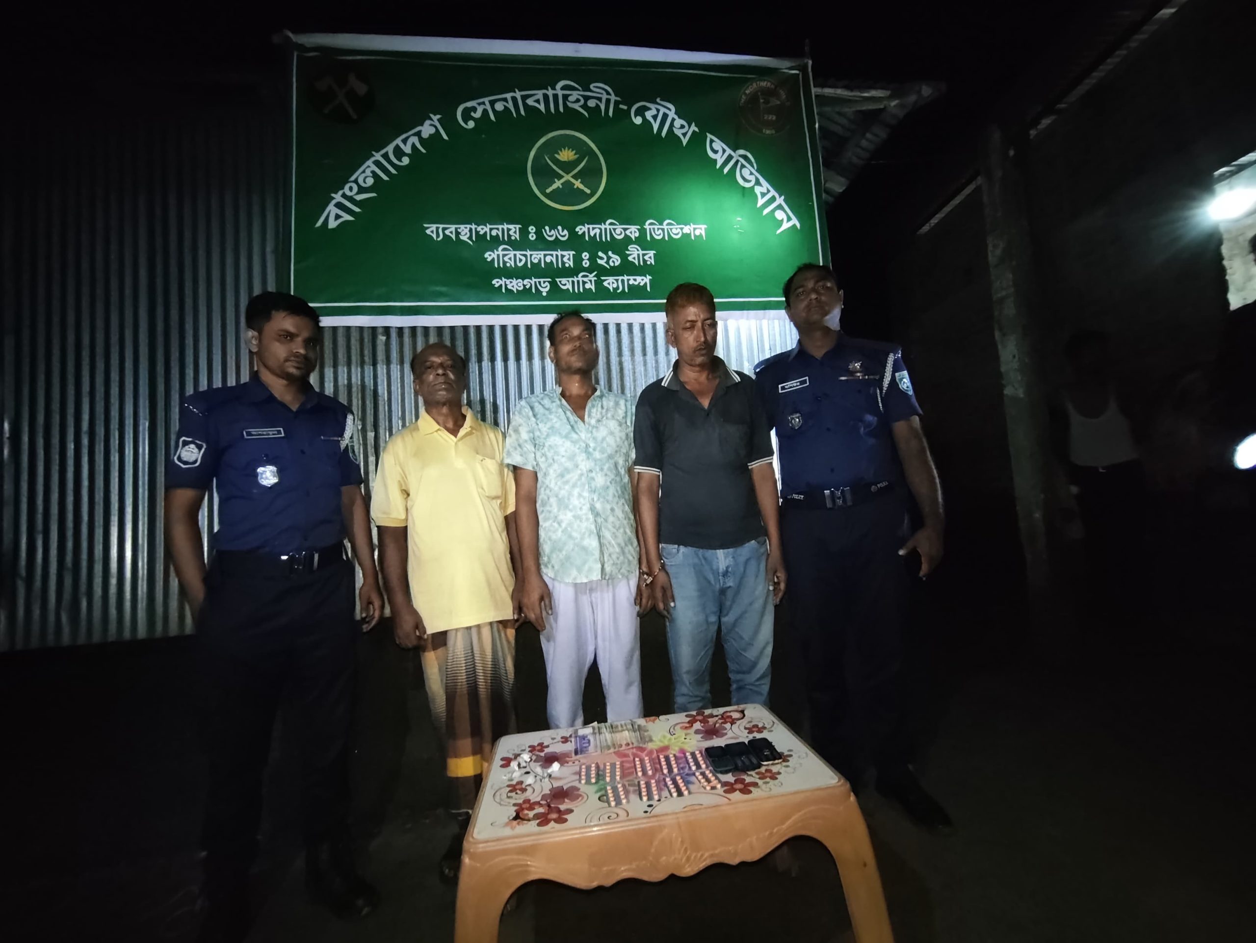 পঞ্চগড়ে সেনাবাহিনীর অভিযানে নিষিদ্ধ ট্যাপেন্টাডল, গাঁজা সহ ওয়ার্ড বিএনপি নেতা সহ গ্রেপ্তার ৩