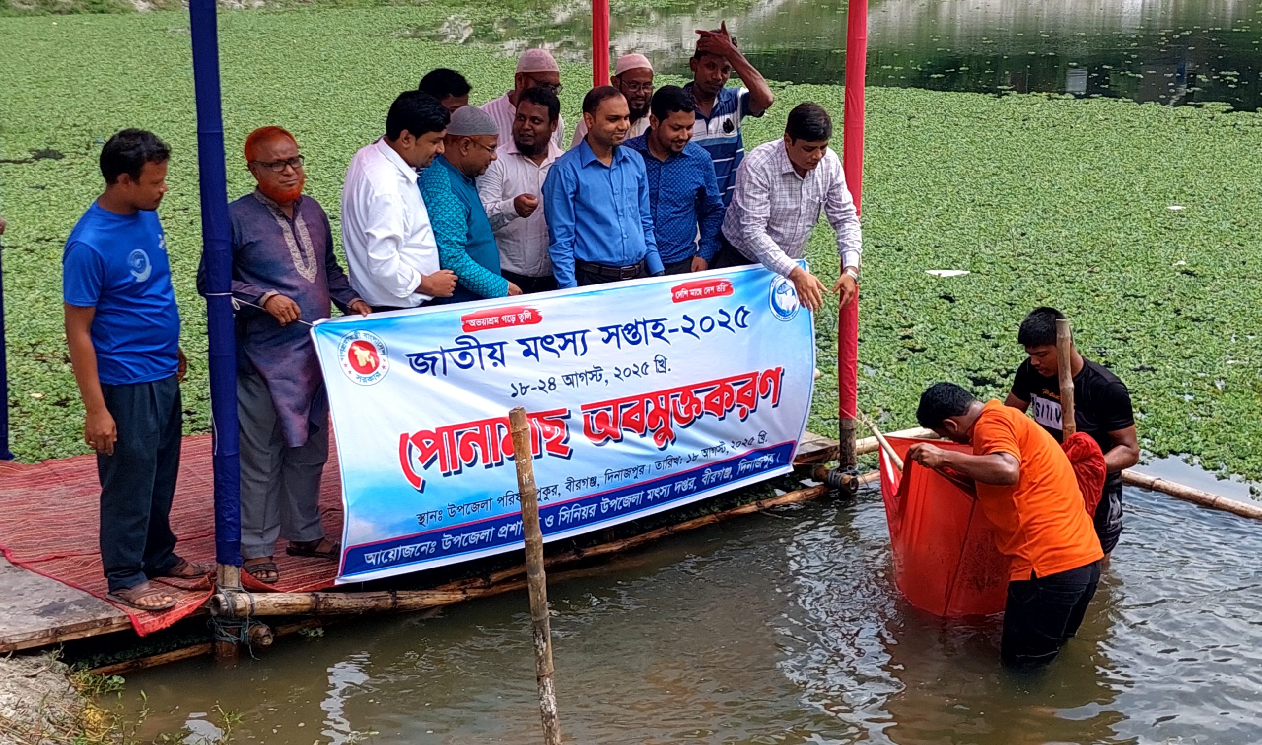 সোমবার ১৮আগস্ট উপজেলা পরিষদ মিলনায়তনে এ সভার আয়োজন করে উপজেলা প্রশাসন ও মৎস্য দপ্তর। আলোচনা সভায় বীরগঞ্জ উপজেলা নির্বাহী অফিসার (ইউএনও) তানভীর আহমেদ এর সভাপতিত্বে উপস্থিত ছিলেন উপজেলা মৎস্য অফিসার মোঃ ফজল ইবনে কাওছার আলী, বীরগঞ্জ থানার অফিসার্স ইনচাজ আব্দুল গফুর সহ জনপ্রতিনিধি, মৎস্য চাষি ও স্থানীয় গণ্যমান্য ব্যক্তিবর্গ উপস্থিত ছিলেন ।