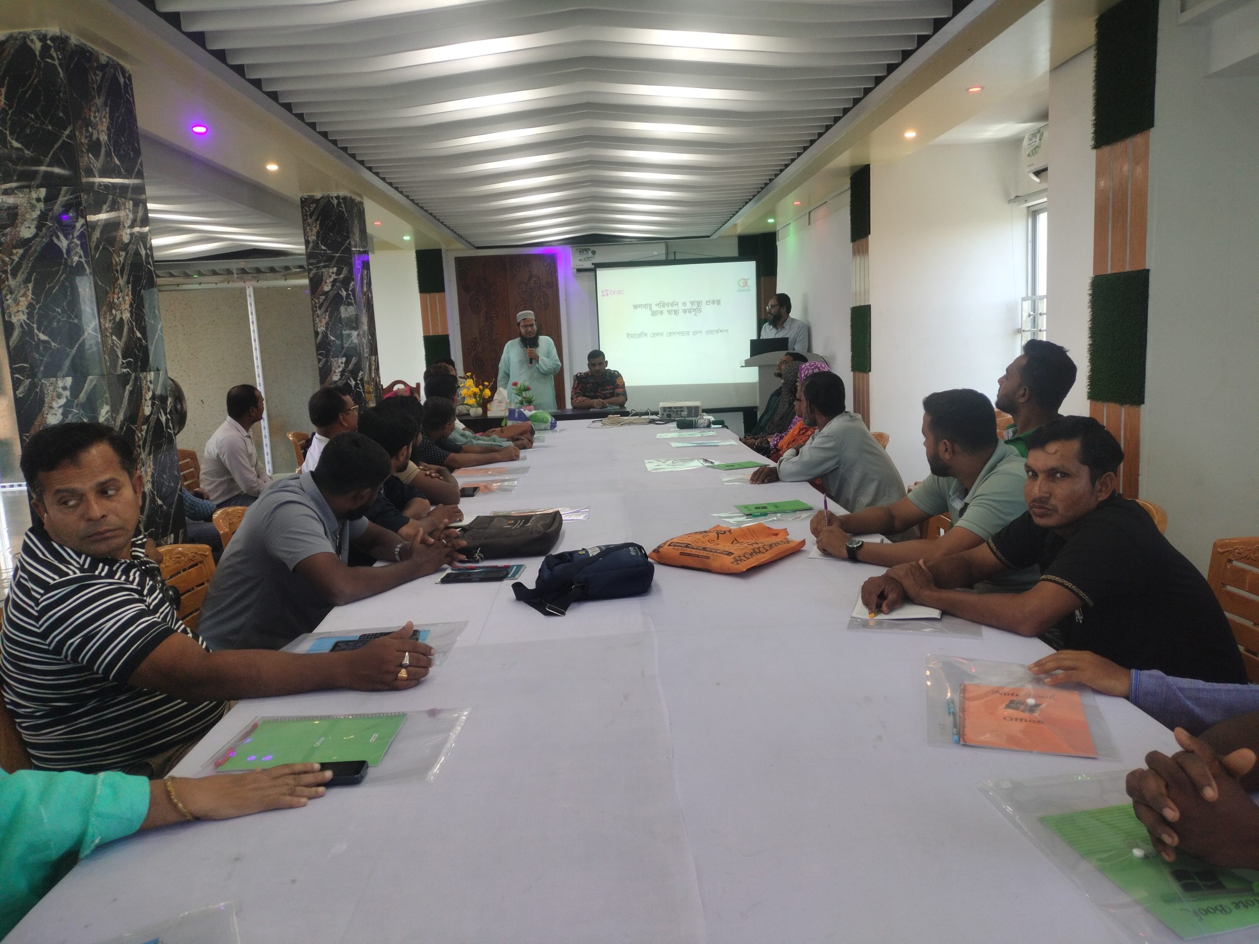 কর্মশালায় জলবায়ু পরিবর্তন এবং স্বাস্থ্যের উপর ঝুঁকি যেমন সকল প্রকার দুর্যোগ মোকাবেলা, উচ্চ তাপমাত্রা, নিম্ন তাপমাত্রা, অতিবৃষ্টি, ও গর্ভবতী নারী,শিশু স্বাস্থ্য, প্রতিবন্ধী, মারাত্মক ডায়রিয়ায় আক্রান্ত, ডায়াবেটিস,ইত্যাদি’র স্বাস্থ্য বিষয় গুরুত্বপূর্ণ আলোচনা অনুষ্ঠিত হয় ‘যা বাস্তবায়নের জন্যেও অংশগ্রহণকারীদের উপর গুরুত্বারোপ করা হয়।