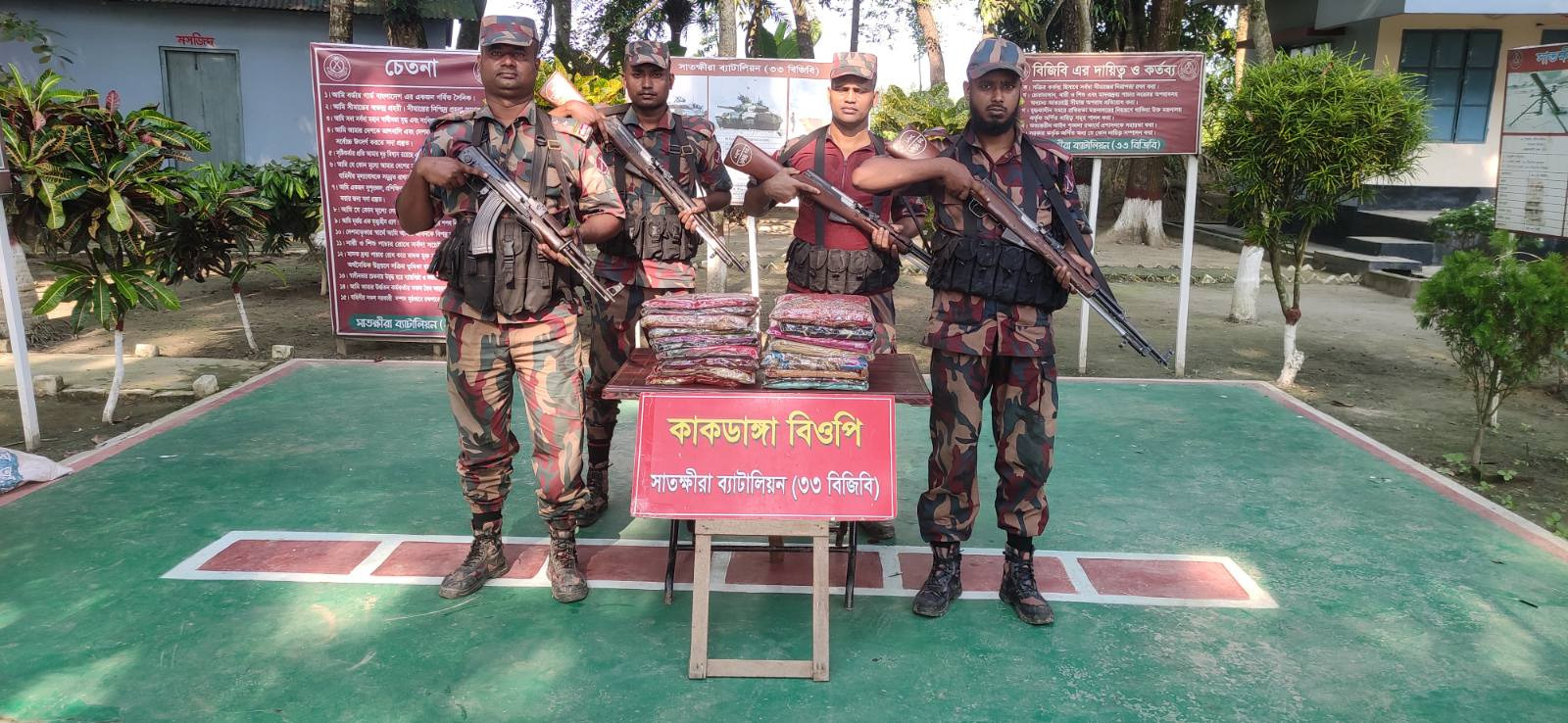 গোয়েন্দা তথ্যের ভিত্তিতে হিজলদী বিওপির আভিযানিক দল কলারোয়া উপজেলার শিশুতলা এলাকা থেকে ২০ বোতল ভারতীয় মদ আটক করে। একইদিন চান্দুরিয়া বিওপি দল গোয়ালপাড়া মাঠ এলাকা থেকে ১ লাখ ৪০ হাজার টাকার ভারতীয় ঔষধ, তলুইগাছা বিওপি দল চারাবাড়ি থেকে ৩০ হাজার টাকার ভারতীয় শাড়ি, মাদরা বিওপি দল আনারস বাগান থেকে ৫২ হাজার ৫০০ টাকার ভারতীয় শাড়ি জব্দ করে।