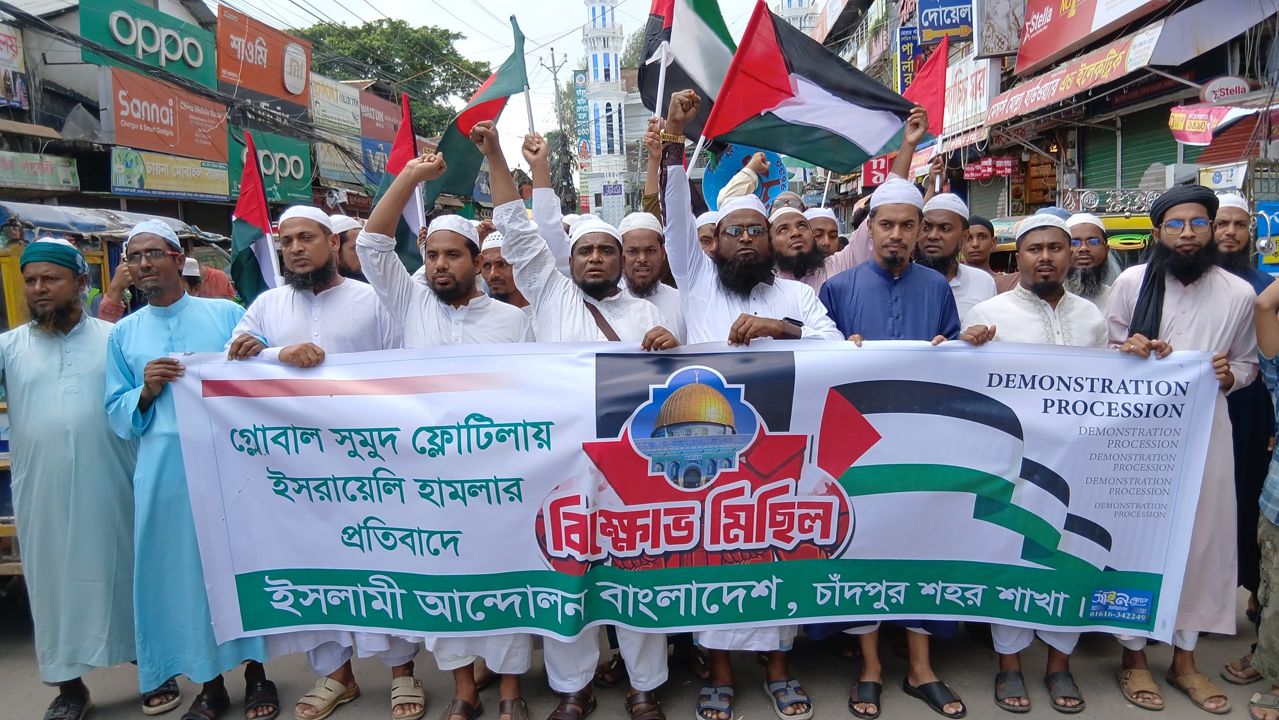 ইসলামী আন্দোলন বাংলাদেশ চাঁদপুর শহর শাখার উদ্যোগে গ্লোবাল সুমুদ ফ্লোটিলা”-এর ওপর ইসরায়েলি হামলার প্রতিবাদ ও ফিলিস্তিনে মানবিক সহায়তা যাত্রায় সংহতি জানিয়ে বিক্ষোভ মিছিল ও প্রতিবাদ সমাবেশ অনুষ্ঠিত হয়েছে।