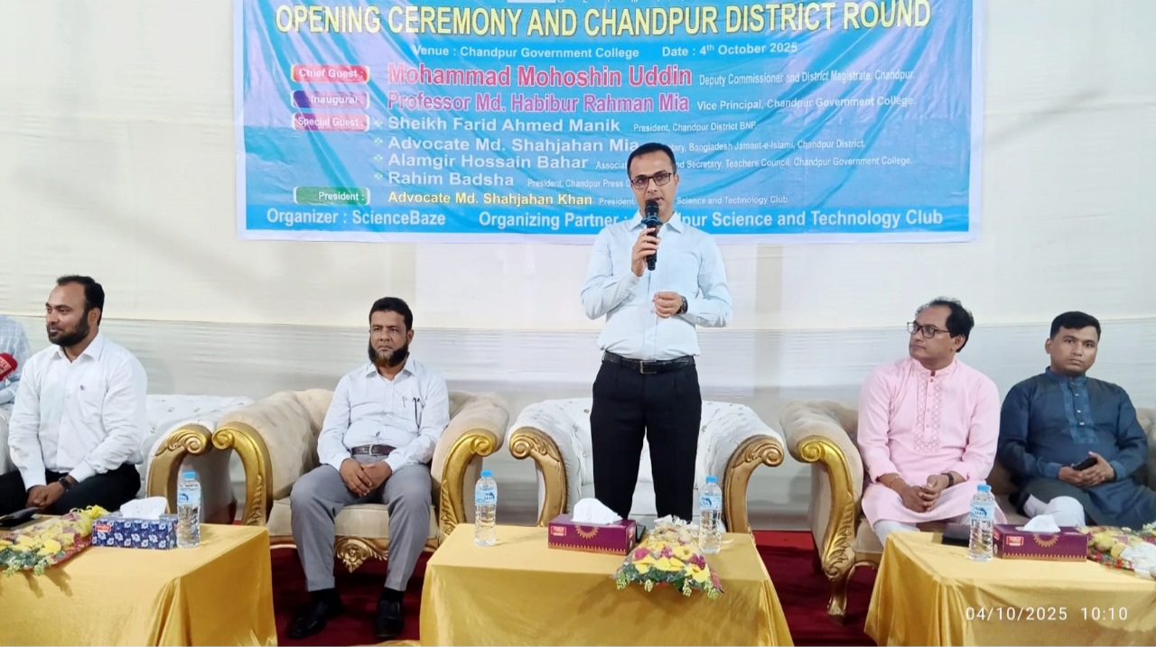 চাঁদপুর বিজ্ঞান ও প্রযুক্তি ক্লাবের সভাপতি অ্যাডভোকেট মো. শাহজাহান খানের সভাপতিত্বে বিশেষ অতিথির বক্তব্য দেন চাঁদপুর সরকারি কলেজের শিক্ষক পরিষদের সাধারণ সম্পাদক ও সহযোগী অধ্যাপক আলমগীর হোসেন বাহার, চাঁদপুর প্রেসক্লাব সভাপতি রহিম বাদশা।