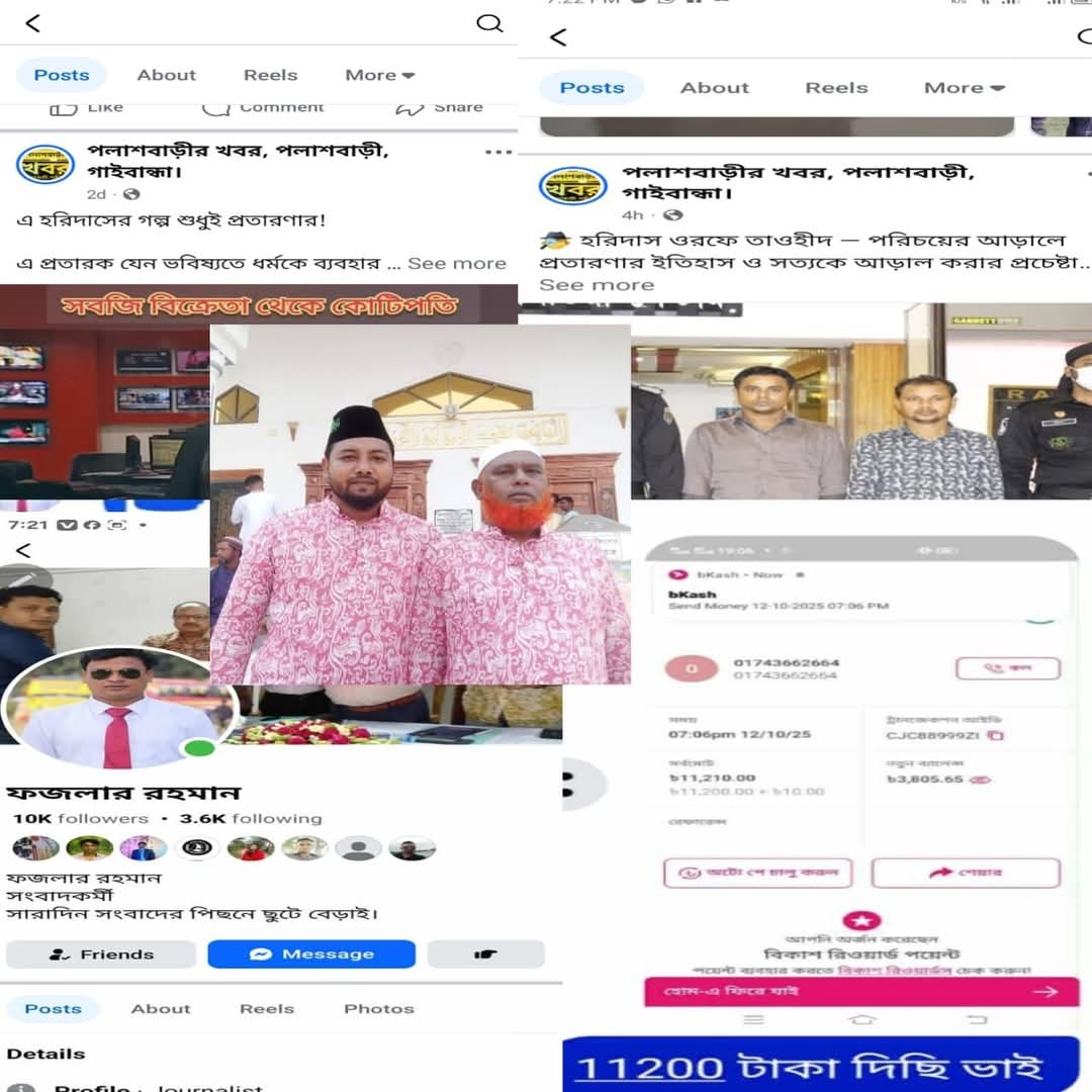 ১১ হাজার ২০০ টাকার বিনিময়ে পলাশবাড়ীর খবর পেজ এর এডমিন শাকিল তালুকদার ডিলিট করলো বহুল আলোচিত সনাতনীদের প্রান পুরুষখ্যাত হরিদাস চন্দ্র তরনী দাসের গত ২০২২ সালের একটি ঘটনার ভিডিও।