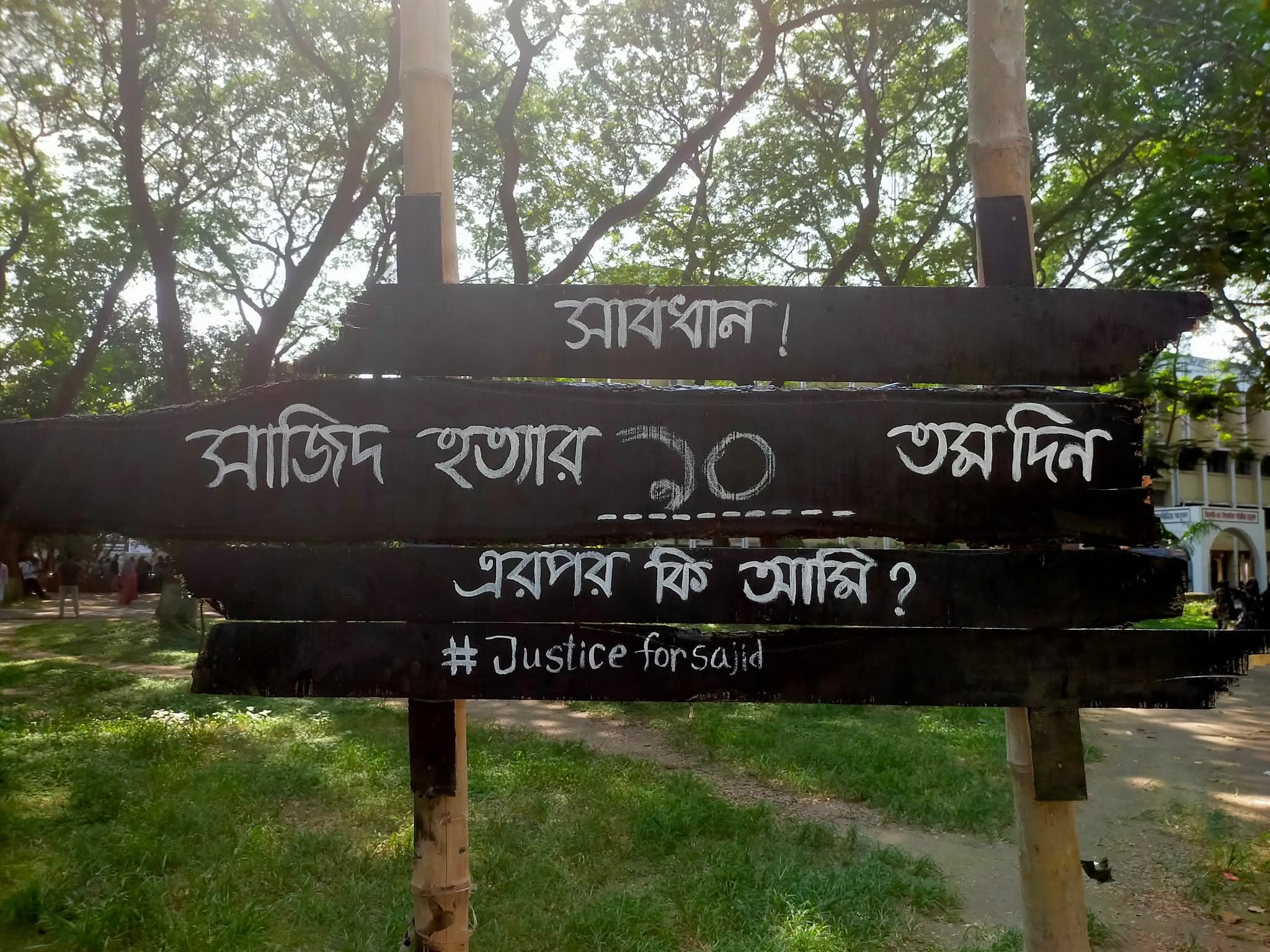 শিক্ষার্থী ইসতিয়াক ফেরদৌস ইমন বলেন, “এই বোর্ড আমাদের দেখাচ্ছে সাজিদ হত্যার বিষয়টি কতটা বিলম্বিত হচ্ছে। আমরা প্রতিদিন বোর্ডে থাকা তারিখ পরিবর্তন করব। দিন যত বাড়বে, ততই শিক্ষার্থীরা বুঝতে পারবে সাজিদ হত্যার পেছনে কী পরিমাণ কালক্ষেপণ ও ষড়যন্ত্র চলছে।”