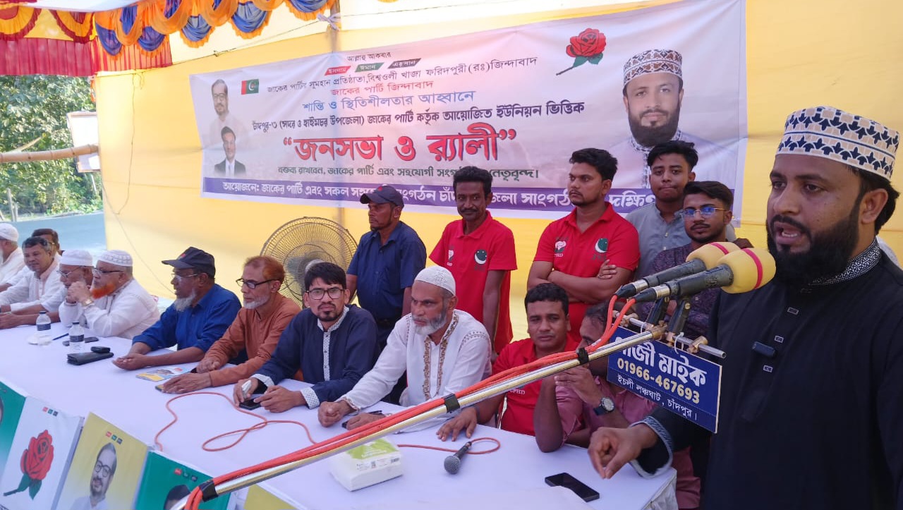 জাকের পার্টির চেয়ারম্যান মোস্তফা আমীর ফয়সলের নির্দেশে কেন্দ্রীয় কর্মসূচীর ধারাবাহিকতার অংশ হিসেবে শান্তি ও স্থিতিশীলতার আহ্বানে চাঁদপুর-৩ (সদর ও হাইমচর উপজেলা) জাকের পার্টি কর্তৃক আয়োজিত চাঁদপুর পৌরসভার অন্তর্ভুক্ত ১৪ নং ওয়ার্ডে গোলাপ ফুলের সমর্থনে ইউনিয়ন ভিত্তিক জনসভা ও র্যালী অনুষ্ঠিত হয়েছে।
