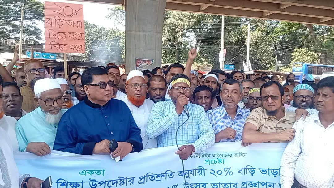 বেসরকারি শিক্ষা প্রতিষ্ঠানে কর্মরত এমপিওভুক্ত শিক্ষক-কর্মচারীদের বাড়িভাড়া ২০%, চিকিৎসা ভাতা এবং উৎসব ভাতা ৭৫% প্রদানের দাবিতে গাইবান্ধার পলাশবাড়ীতে মানববন্ধন শেষে র্যালী অনুষ্ঠিত হয়েছে।