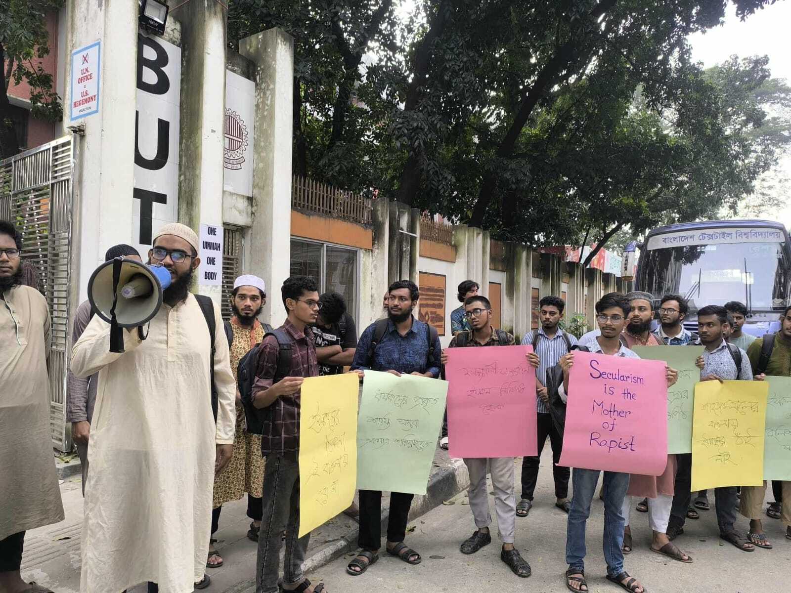 বাংলাদেশ টেক্সটাইল বিশ্ববিদ্যালয়ের (বুটেক্স) সাধারণ শিক্ষার্থীরা সম্প্রতি গাজীপুরে ইসলামবিদ্বেষী কর্মকাণ্ড, মুসলিম নারীদের প্রতি কুরুচিপূর্ণ মন্তব্য, এবং একাধিক ধর্ষণ ও হুমকির ঘটনার প্রতিবাদে মানববন্ধন কর্মসূচি পালন করেছেন।